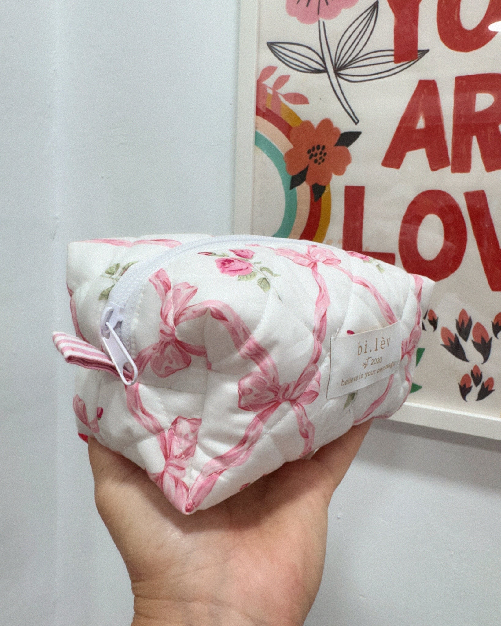 This pouch features top zip with herringbone puller. It is perfect to carry your skincare and make up. Every piece has been handmade.· 100% Cotton· Machine wash cold. Tumble dry low. Cool iron.SIZE:- Length 25 cm / Height 8.5 cm / Width 12 cm Matching mini wallet pouch here / scrunchie here